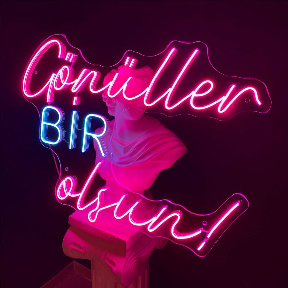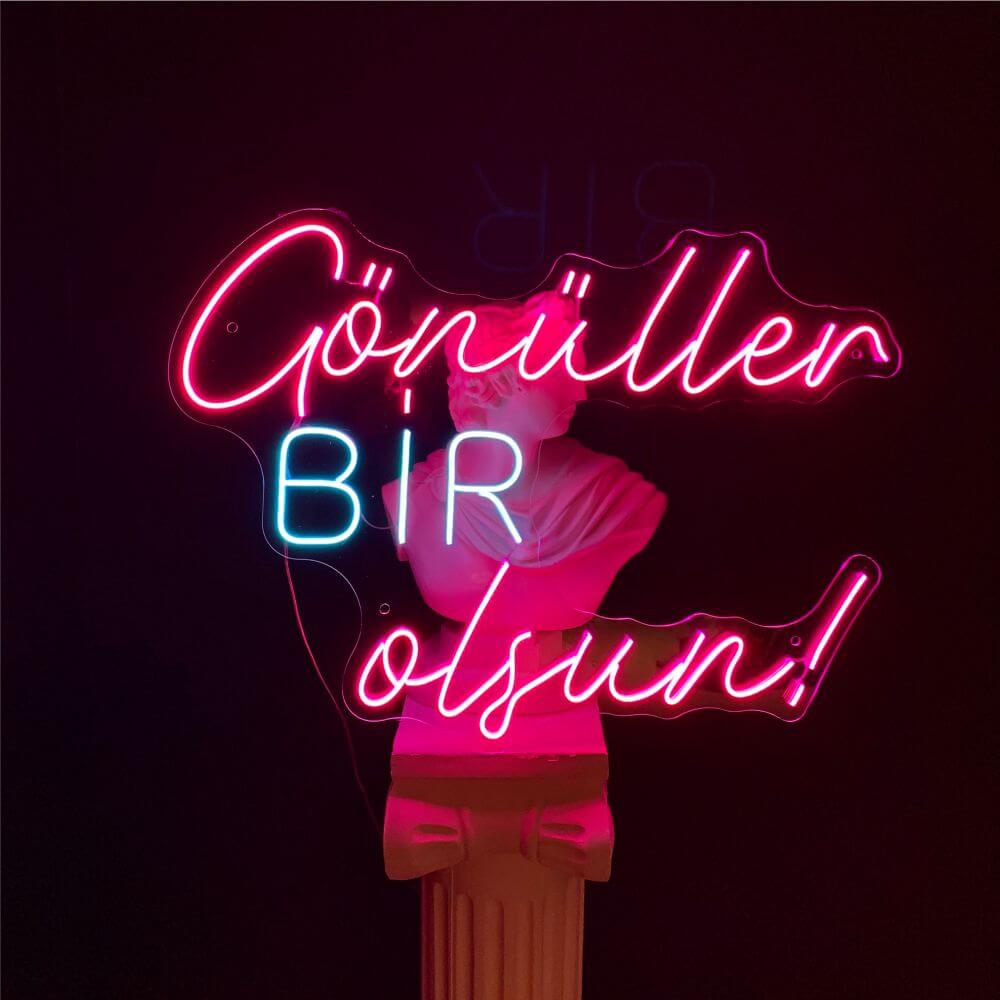 Gönüller Bir Olsun Neon Sign is produced using unbreakable, environmentally friendly materials