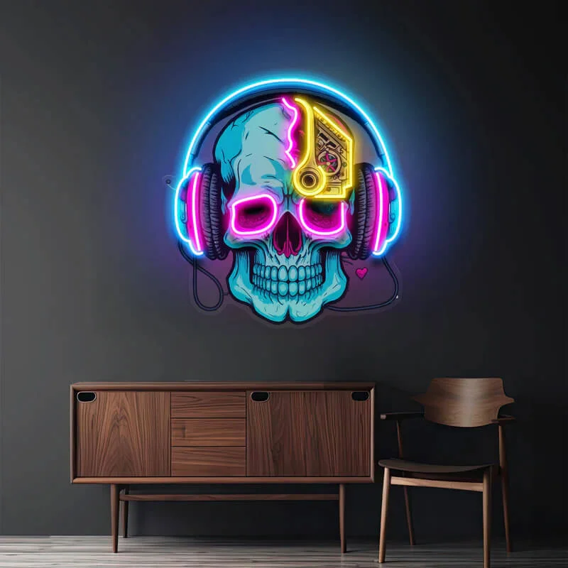 Kulaklık Pop Art Neon Tabela kırılmaz, çevre dostu malzemeler kullanılarak üretilir
